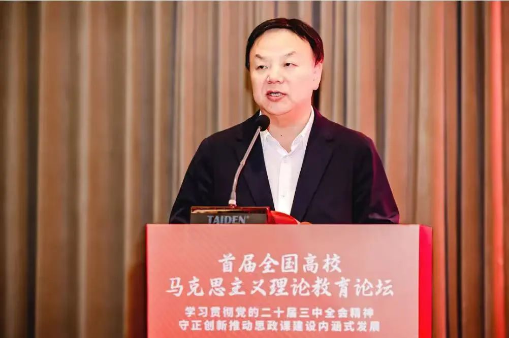 开幕式上,姜少飞和黄刚分别代表主办方致辞。姜少飞指出,新时代开展好马克思主义理论教育,不仅要把党的二十届三中全会精神及时、全面、准确地融入思政课教学,还要按照进一步全面深化改革的总体要求,坚持思政课建设与党的创新理论武装同步推进,持续推动思政课改革创新,用心用情办好这一立德树人的关键课程。黄刚指出,本次论坛是贯彻落实党的二十届三中全会精神及习近平总书记对学校思政课建设的重要指示精神的切实有力举措,有利于推动高校马院全面贯彻党的教育方针,进一步落实立德树人根本任务,不断开创新时代思政教育新局面,努力培养更多让党放心、爱国奉献、担当民族复兴重任的时代新人。