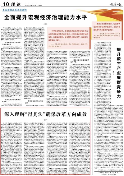 7月25日,《经济日报》理论版刊发北京市习近平新时代中国特色社会主义思想研究中心特约研究员、必赢国际437官网龙马学者特聘教授赵付科署名文章《深入理解“得其法”确保改革方向成效》。文章指出,面对严峻复杂的国际环境和艰巨繁重的国内改革发展稳定任务,必须进一步深化对改革的规律性认识,要坚持守正创新,坚持目标导向和问题导向相结合,抓住主要矛盾和矛盾的主要方面,坚持人民至上,坚持以全局观念和系统思维谋划推进,以钉钉子精神抓改革落实,不断开创进一步全面深化改革的新局面。