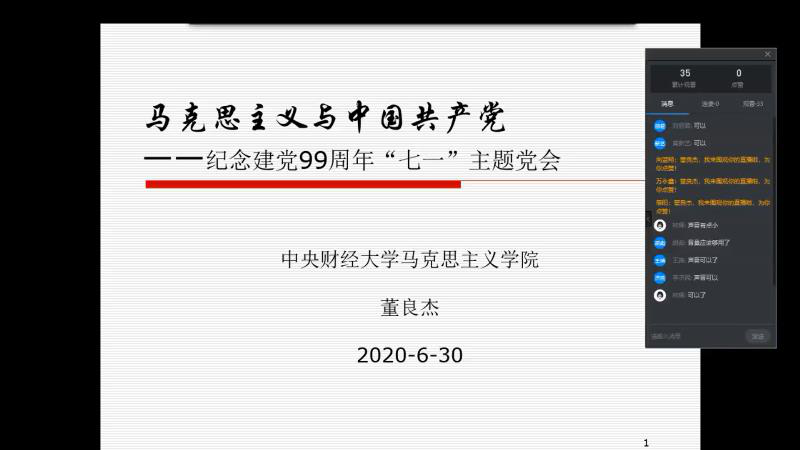 受核工业研究生部第五支部邀请,2020年6月30日下午两点,必赢国际437官网马克思主义基本原理教研室董良杰老师为该支部全体党员讲授了主题为“马克思主义与中国共产党”的党课。党课主要讲述了四个问题,即:马克思对近代中国的关注与同情、马克思主义与中国人民的新选择、中国共产党与中国社会的历史巨变、新时代理论创新与中华民族伟大复兴。此外,结合当前全球肆虐的新冠疫情,还阐述了中国特色社会主义和资本主义的区别,强调了道路自信、理论自信、制度自信、文化自信的重要性。最后,董良杰老师和该支部党员就党课内容进行了充分地交流。核工业研究生部校长全程聆听了此次党课,并代表师生给予了充分肯定和高度评价。