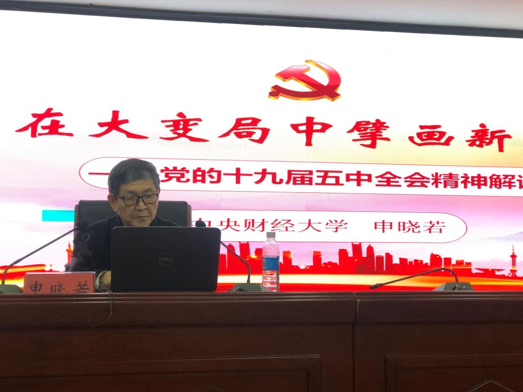 为深入学习宣传贯彻党的十九届五中全会精神,2020年11月20日,申晓若教授与司晓静博士在甘肃省宕昌县委党校开展党的十九届五中全会精神专题辅导培训,对全会精神进行全面宣讲和详细解读。宕昌县四大班子在家领导,县委各部门、县直各单位主要负责同志及各界干部群众代表等共140人参加了现场学习。