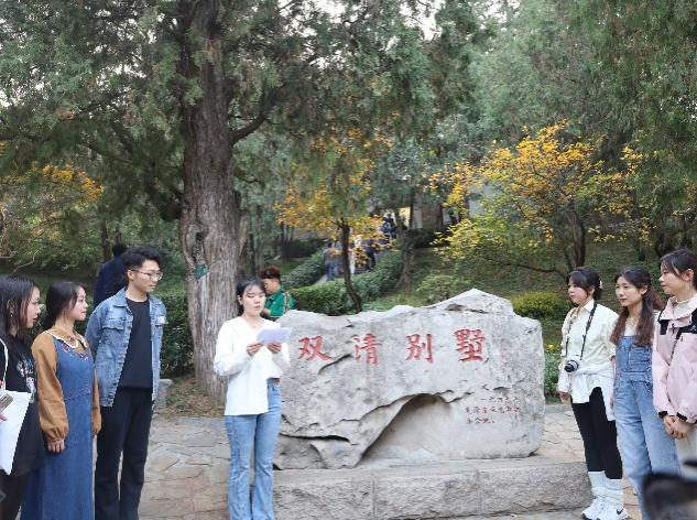 随后,全体党员同志参观了双清别墅,这里是中国共产党“进京赶考”第一站,曾是中共中央的指挥中心,它见证了中国革命走向胜利的历程。在这里,博士研究生第一党支部张馨元同志围绕“铭记历史,走好新时代赶考之路”进行现场教学,硕士研究生第一党支部周澳妍同志作了题为“忆‘赶考之路’守时代初心”的现场教学。