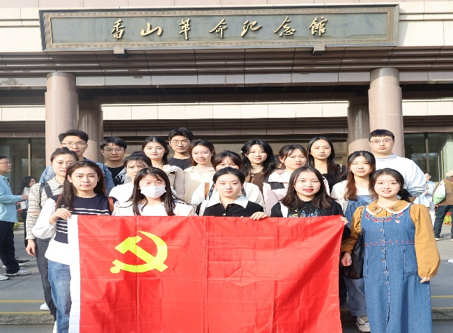 在香山革命纪念馆内党员同志们进行了精彩的现场教学。博士研究生第二党支部王萌同志分享了“红鱼书信寄深情——纪念伟大的无产阶级革命家任弼时”的学习感悟,硕士研究生第二党支部张慧同志作了题为“追寻红色印记赓续赶考精神”的现场学习。