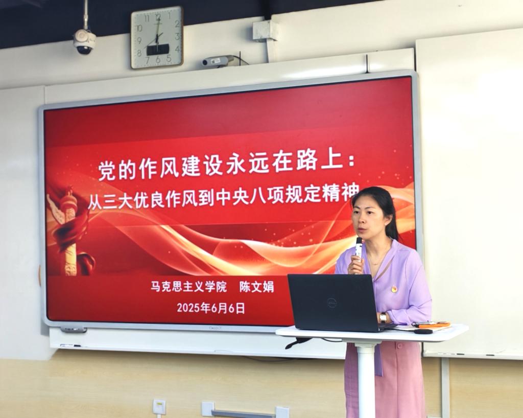 为深入学习贯彻习近平新时代中国特色社会主义思想,进一步筑牢思想根基,强化预备党员与入党积极分子的责任担当,6月6日,必赢国际437官网党委书记陈文娟面向学院全体研究生积极分子、预备党员,讲授了一堂以“党的作风建设永远在路上:从三大优良作风到中央八项规定精神”为主题的党课。